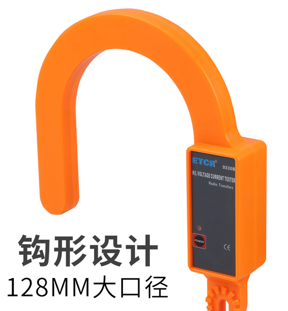 大口径勾形无线高低压电流表由叉形钳头、接收器、伸缩绝缘杆组成。在110kV以下测试需带绝缘杆操作(可定制500kV以下测试),在600V以下可不使用绝缘杆。仪表还具有数据保持、数据存储等功能。