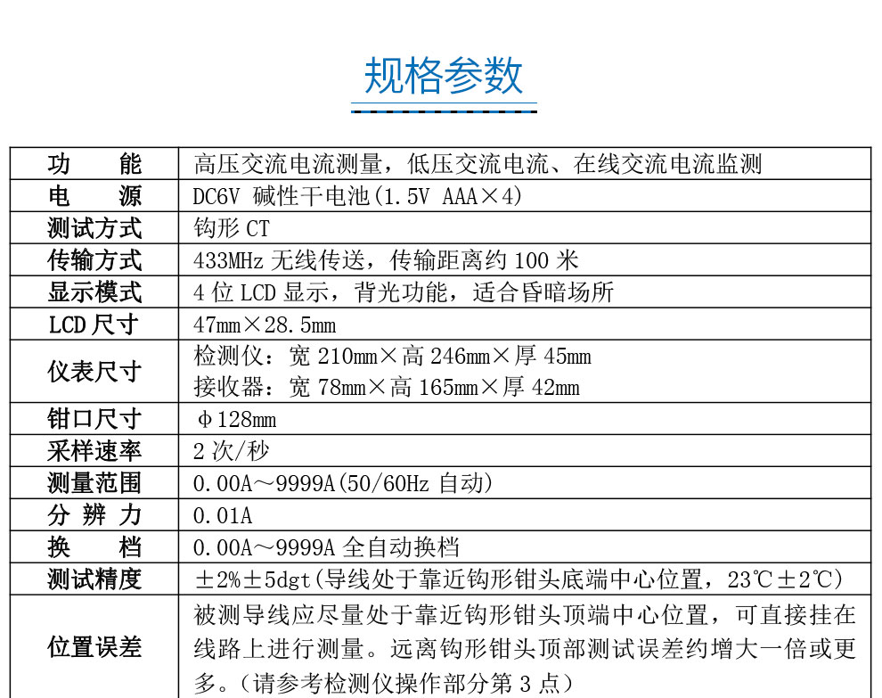 测试精度 | ±2%rdg±5dgt(导线处于靠近U形钳口底端中心位置) |